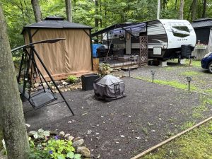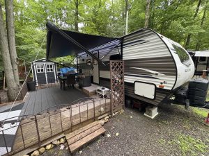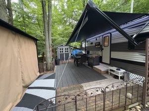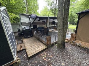 ◦ 1 Deck bois traité 12×12 (pour le gazebo), 1 deck à la sortie de la roulotte 10×16